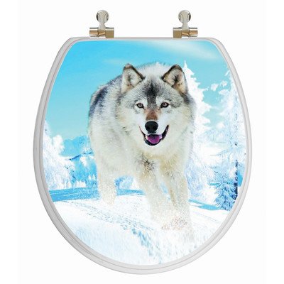 Topseat 3dラウンドトイレシート、W / Chromedメタルヒンジ、木製、Snow Wolf