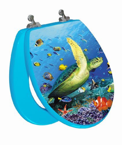 TOPSEAT 3Dオーシャンシリーズ円形トイレシート クローム金属ヒンジ 木製 ウミガメの絵柄