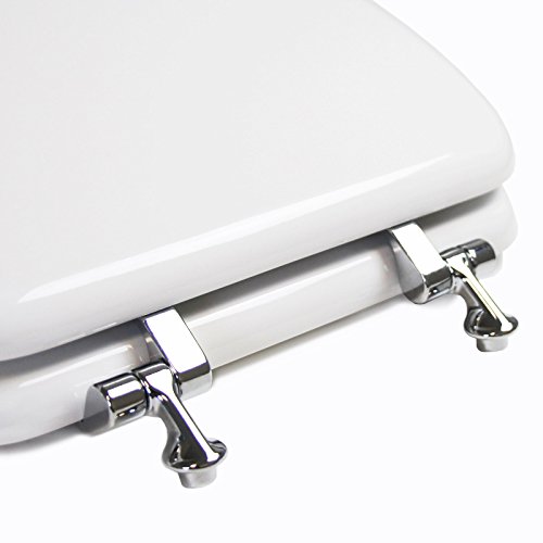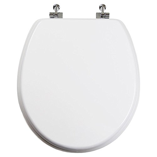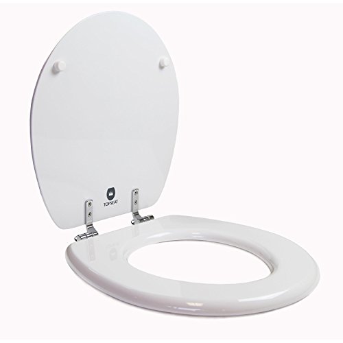 TOPSEAT 丸形トイレ便座 クロム化金属ヒンジ付き 木製 白
