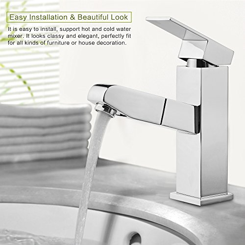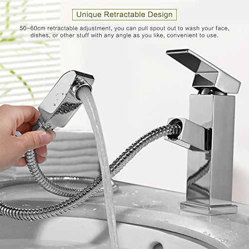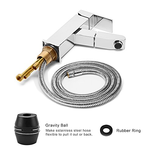 - [ホース引出し出しデザイン]50〜60cmルリトラクタブル調節の機能でどんな角度でも好きなように引き出せて、洗顔、野菜の清潔などを便利に使えます。重力ボールの構造で簡単に蛇口を引き出したり、戻したりにします。