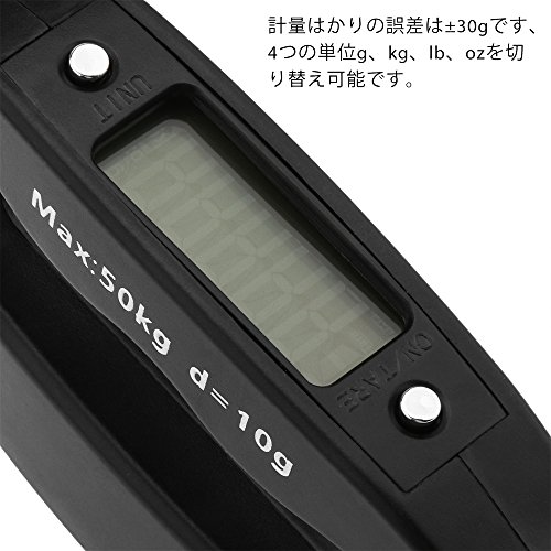- 高精度荷物はかり:計量範囲は最小10gまでの精度、最大50KGまで測れます。計量はかりの誤差は±30gです。4つの単位g、kg、lb、ozを切り替え可能です。荷物の重量オーバーを心配する必要はありません(特に飛行機旅行)。お金や時間の節約も簡単にできます。