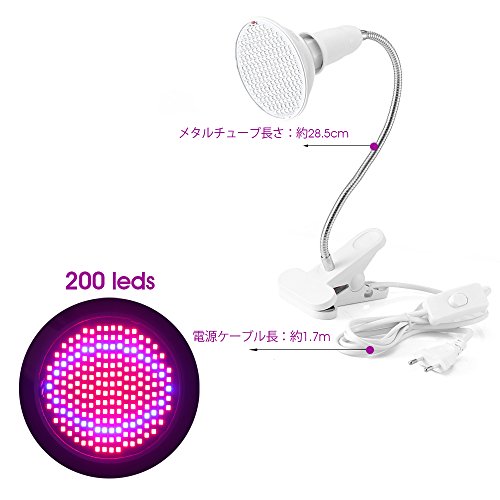 ALLOMN 200LED 水耕栽培ランプ 赤/青いLED 室内用植物育成LEDライト クリップライト フレキシブルアーム 低消費電力省エネ 水槽照明 観葉植物 園芸 50000時間使用 20W