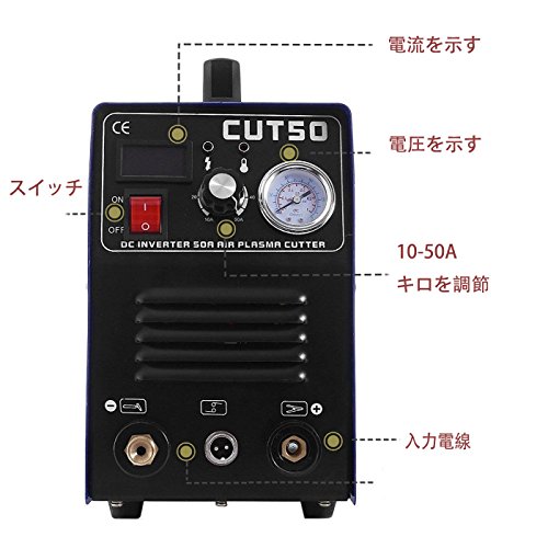 - ス-パ-ツ-ル:切断能力が强くアルミニウム 鉄 銅などいろいろな原料が切断できます。最大切断能力15mm。oxy-acetylene cutting 熔断よりカット速度が1.8倍に増える。50A電流、大仕事率でスムーズなアークスタートする。