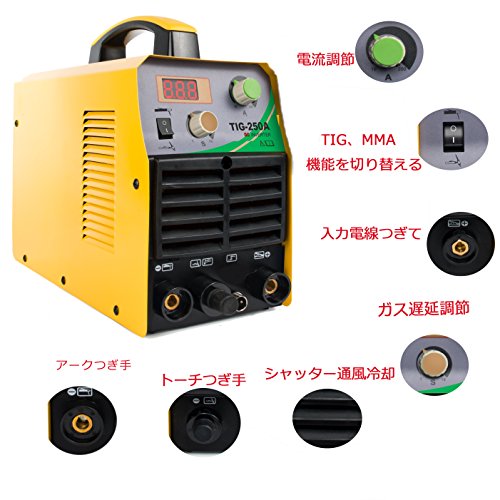 アーク・TIG兼用溶接機 インバータ- 制御 250A 50/60Hz 単相200v 家庭用/工業用 TIG-250A [送料無料]