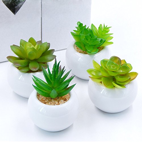 - 【ミニオフィスの装飾】伝統的な陶器のポットで4つの小さなかわいい植物は、あなたの家、オフィス、バスルームに自然な景色をもたらします。