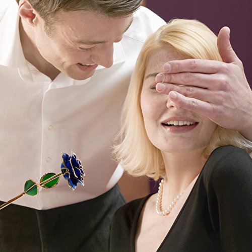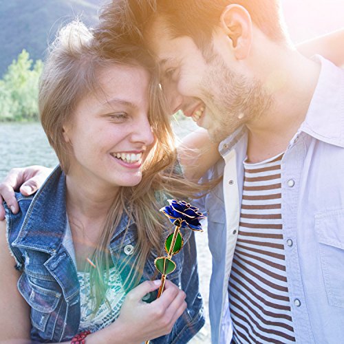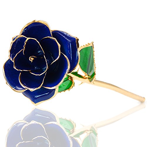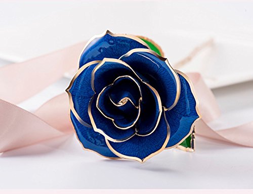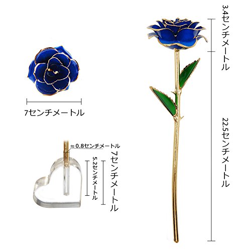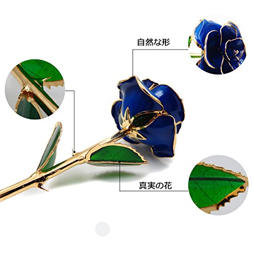 TOSSOW 24K純金箔バラ 一輪バラ 造花 2 支柱がある 永遠の愛 、バレンタインデー、母の日、記念日、誕生日プレゼントに最適なプレゼント、靑い