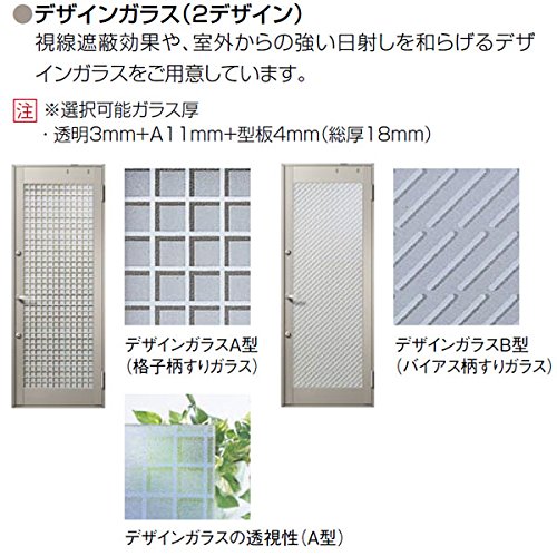 デザインガラス:デザインガラスA / デザインガラスB , 勝手:左勝手 / 右勝手【納期・在庫状況に関する注意事項】・メーカー発注後、在庫を確認してご連絡いたします。通常10営業日(土日祝除く)程度【梱包状態・その他注意事項】・オプション追加時は【】内の金額が加算、減算されます。確定金額は注文承諾メールにてお知らせいたしますので、必ずご確認ください。【お支払い方法】・代引き以外の支払い方法【組立・梱包・送料】・アルミサッシの場合、基本的にガラスを障子に組み込んだ状態でお送りいたします。枠、その他の組立は現地対応となります。・送料は下記参照 ・但し離島、遠隔地(北海道、沖縄含む)はプラス。宅配便、またはメーカー直送にて発送。