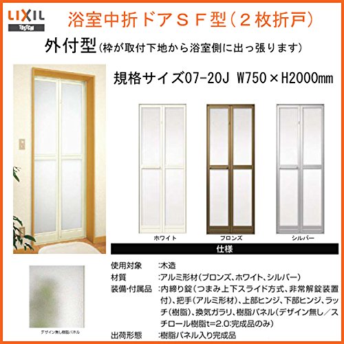 TOSTEM 浴室ドア 浴室2枚折ドア SF型完成品 外付型 W750*H2000 S-SF-07-20J
