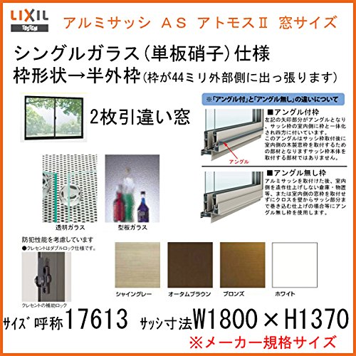 TOSTEM アルミサッシ 引き違い窓 アトモスII シングル硝子 サッシ寸法W1800*H1370 17613