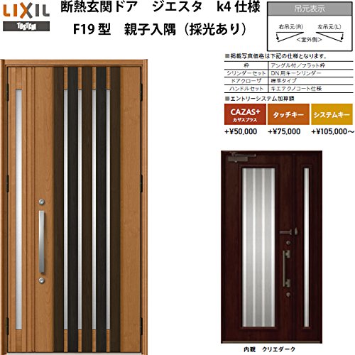 TOSTEM 断熱玄関ドア ジエスタ F19型デザイン k4仕様 親子入隅(採光あり)ドア