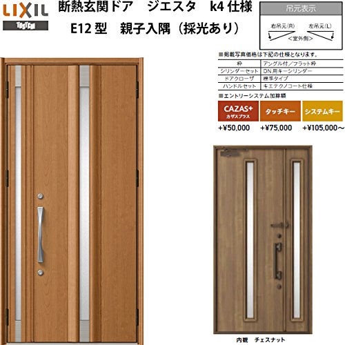 TOSTEM 断熱玄関ドア ジエスタ E12型デザイン k4仕様 親子入隅(採光あり)ドア