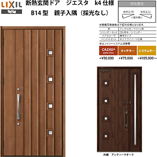 TOSTEM 断熱玄関ドア ジエスタ B14型デザイン k4仕様 親子入隅(採光なし)ドア