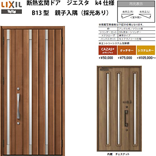 TOSTEM 断熱玄関ドア ジエスタ B13型デザイン k4仕様 親子入隅(採光あり)ドア