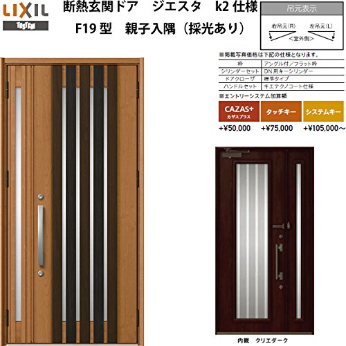 TOSTEM 断熱玄関ドア ジエスタ F19型デザイン k2仕様 親子入隅(採光あり)ドア