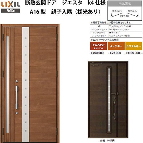 TOSTEM 断熱玄関ドア ジエスタ A16型デザイン k4仕様 親子入隅(採光あり)ドア