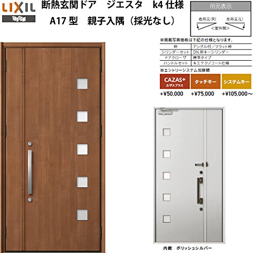 TOSTEM 断熱玄関ドア ジエスタ A17型デザイン k4仕様 親子入隅(採光なし)ドア