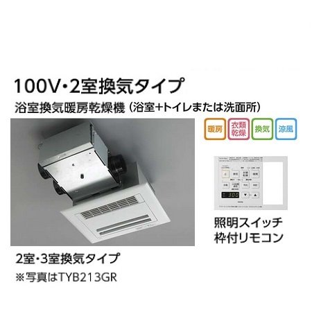★[TYB212GAR]TOTO 浴室換気暖房乾燥機 三乾王 ビルトインタイプ(天井埋め込み) 集合住宅向け 100V・2室換気タイプ(浴室+トイレまたは洗面所) 照明スイッチ枠付リモコン