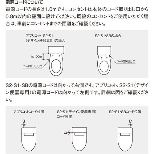 メーカー(TOTO)にて、予め取り付ける便器との対応をご確認の上お買い求めください。