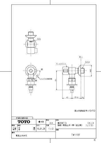 TOTO 洗濯機用水栓(緊急止水弁付) 寒冷地仕様 TW11RF