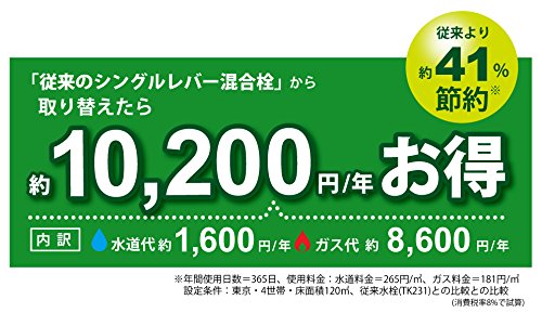 - エコシングル水栓:よく使用するレバー中央部でも水のみ吐水、また水と湯の境をクリック感で知らせ、無意識の湯の無駄遣いを防止する節湯機能付き水栓。