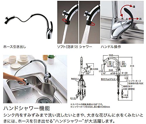 - スパウト(吐水パイプ)部奥行:24.6cm ホースの長さ:35cm 取り付け穴径3.5~3.9cm対応