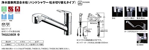 TOTO キッチン用水栓(台付1穴・シングルレバー・浄水器内蔵・ハンドシャワー・吐水切替) TKGG38ER