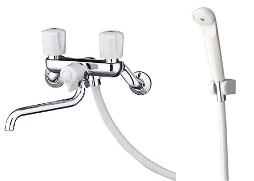 - 壁付き 2ハンドル混合栓 シャワー付き