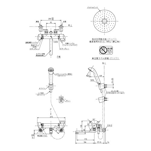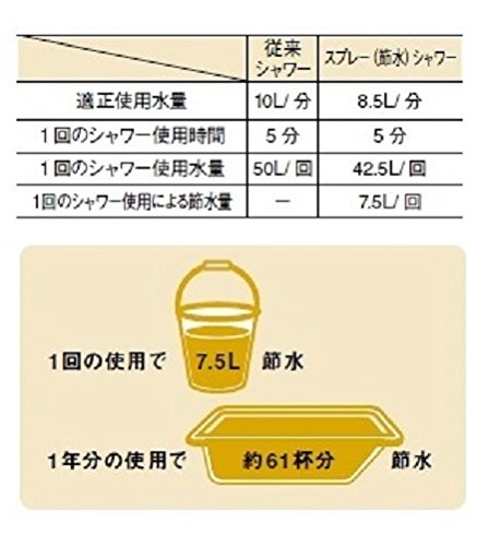 - ・スプレーシャワー(節水タイプ・低水圧対応) ※シャワーに勢いがない場合は同梱の低水圧対応散水板を交換してください。