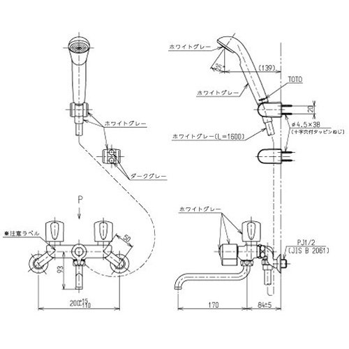 TOTO 浴室用水栓 2ハンドル混合栓 寒冷地向け TMY10U