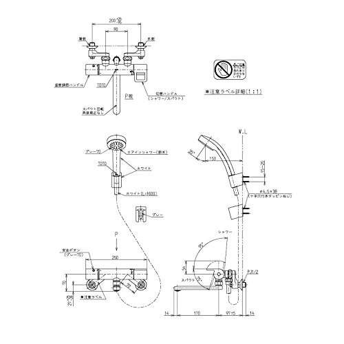 - ※給水圧が低い場合は水勢が十分に得られないことがあります。最低使用水圧は流動時で0.07MPa以上にて使用してください。