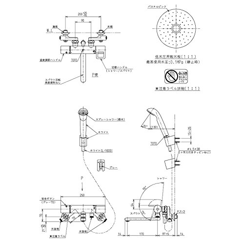 - スプレーシャワー(節水タイプ・低水圧対応) ※シャワーに勢いがない場合は同梱の低水圧対応散水板を交換してください。