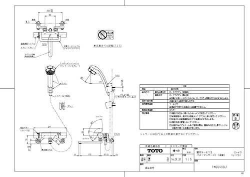 TOTO 浴室用水栓 TMGG40QJ (ワンダービートシャワー/アーチハンドル)