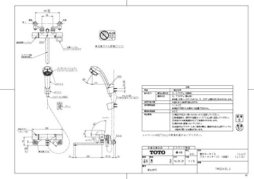 TOTO 浴室用水栓 吐水パイプ220mm TMGG40LJ (ワンダービートシャワー)