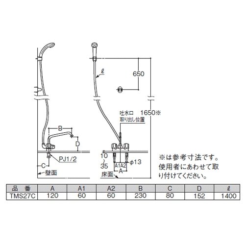 TOTO 浴室用水栓金具【TMS27C】 2ハンドルシャワー金具/台付きタイプ 鉛低減