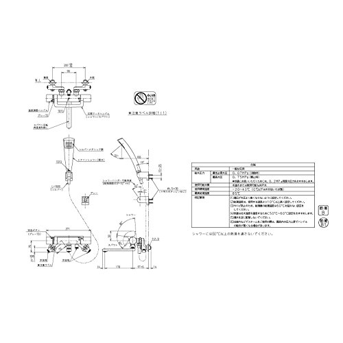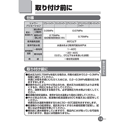 - ※給水圧が低い場合は水勢が十分に得られないことがあります。最低使用水圧は流動時で0.07MPa以上にて使用してください。