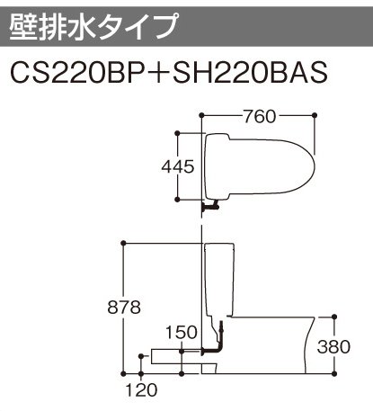 TOTO/東陶 ピュアレストQR(組合わせ便器) 便器(CS220BP)+タンク(SH220BAS) 壁排水(排水心120mm) 手洗なし 便座なし #NW1 ホワイト