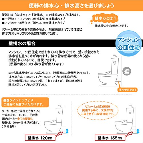 - 壁排水・排水心高さ155mm専用品、止水栓アングル形、フィルターユニットなし。※現地調査の際プロが確認いたしますが、一部設置できない場合がございます。