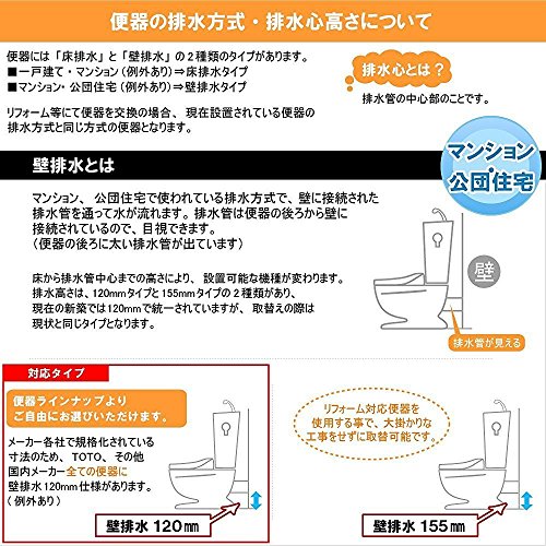 - 床排水・排水心305~540mm/200mmまたは壁排水・排水心高さ120mm。止水栓同梱。※排水方式や排水心の高さなどは現地調査の際プロが確認いたしますが、一部設置できない場合がございます。