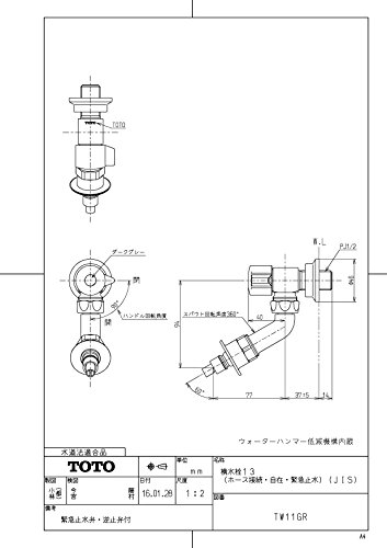 TOTO 洗濯機用水栓(緊急止水弁付) TW11GR