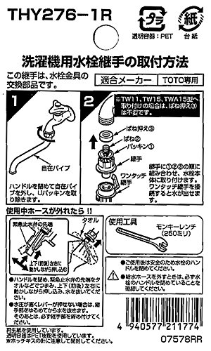 TOTO 緊急止水弁付洗濯機用水栓継手 THY276-1R