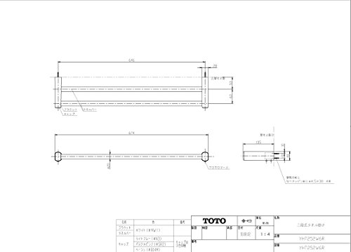・サイズ:674×135×40 ・樹脂製(抗菌) ・キャップカラー:(キャップ以外のカラーはホワイトです。)ライトグレー ・パステルピンク ・ベージュ ※キャップ部は3色を付属していますので、お好きなカラーをご利用下さい。 ※出荷の際にはライトグレーのキャップをつけています。 TOTO YHT252W6R
