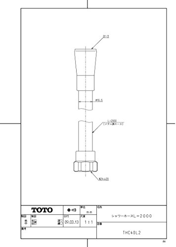 TOTO シャワーホース L=2000mm 本体側ねじW24山20 メタル調 THC40L2