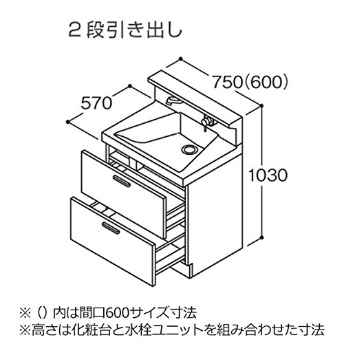 TOTO 洗面化粧台(KZシリーズ) 間口600 2段引き出し パナシェアクア LDCB060BCGGG1B 【水栓ユニット別売り】