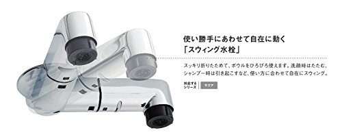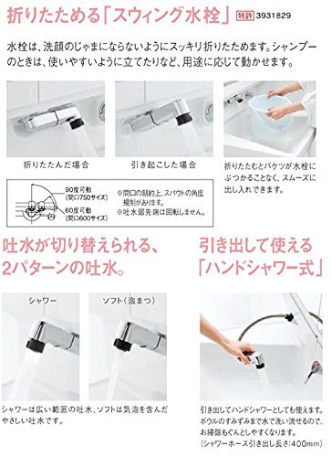 - スウィング水栓(特許):折りたためて、洗顔のじゃまにならない。 ※ホース引き出し長さ400mm
