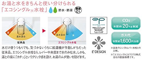 - エコシングル水栓:よく使用するレバー中央部でも水のみ吐水、また水と湯の境をクリック感で知らせ、無意識の湯の無駄遣いを防止する節湯機能付き水栓。