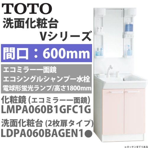 洗面化粧台 Vシリーズ/一面鏡(エコミラー 1800mm対応)/間口600mm 2枚扉タイプ 一般地 エコシングルシャンプー水栓 扉カラー(A/ホワイト) [LDPA060BAGEN1-LMPA060B1GFC1G]