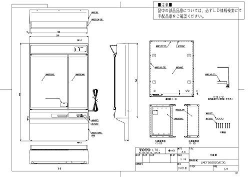 TOTO 洗面化粧台用 化粧鏡(KEシリーズ) 間口600 二面鏡 LMCF060B2GAC3G
