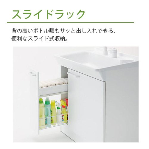 - 背の高いボトル類が取り出しやすいスライドラックと開き扉のコンビタイプ。