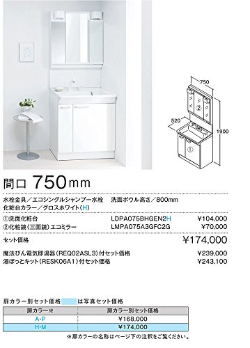 - 幅750奥行520高さ1900mm 洗面ボウル高さ:800mm