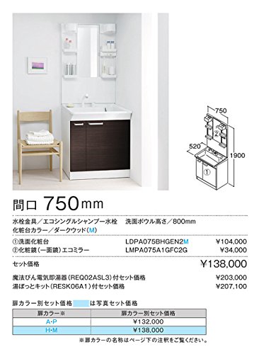 - 幅750奥行520高さ1900mm 洗面ボウル高さ:800mm